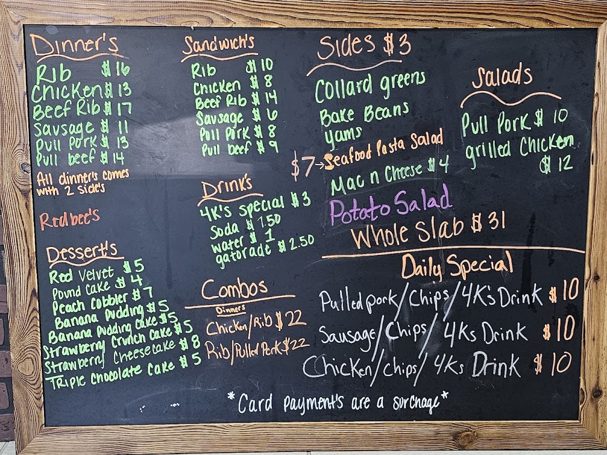 Located in Clearwater, Florida, 4K’s BBQ and Catering is a haven for lovers of authentic smoked barbecue. Their menu features a tantalizing array of dishes that promise to satisfy every craving. The whole slabs of ribs, available in both beef and pork, are undeniably a must-try. Customers rave about the pulled pork nachos and the rich flavor of the beef nachos, all beautifully paired with delicious sides like mac and cheese and collard greens.